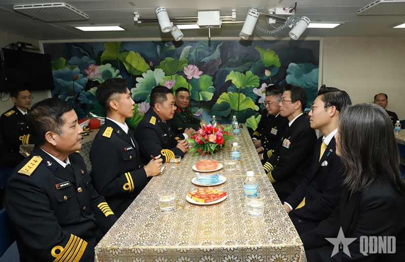 ພາຍຫຼັງພິທີຕ້ອນຮັບ, ບັນດານາຍທະຫານເຮືອຍີ່ປຸ່ນ ໄດ້ຂຶ້ນຢ້ຽມຢາມກຳປັ່ນໝາຍເລກ 015-ເຈິ່ນຮືງດ້າວ ແລະແລກປ່ຽນກັບຄະນະປະຕິບັດງານ.