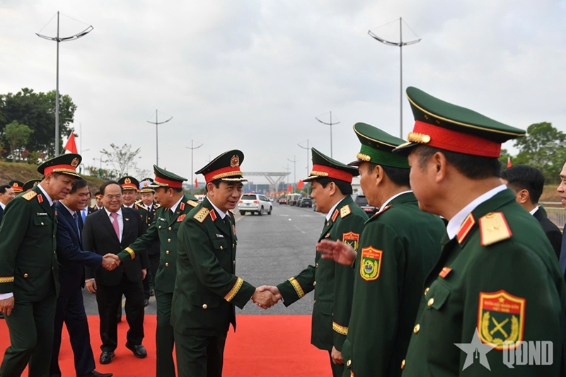 ພິທີສົ່ງທ່ານພົນເອກ ຟານວັນຢາງ ພ້ອມດ້ວຍຄະນະ ຖືກຈັດຂຶ້ນຢູ່ດ່ານທະຫານຊາຍແດນ ບັກລວນ 2, ແຂວງ ກວາງນິງ.