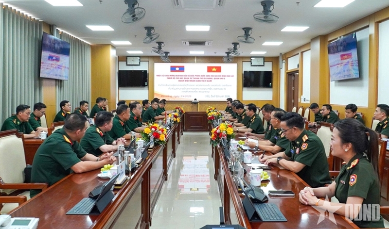ຄະນະປະຕິບັດງານກະຊວງປ້ອງກັນປະເທດລາວ ຢ້ຽມຢາມກອງບັນຊາການທະຫານນະຄອນດ່ານັ້ງ. ພາບ: qdnd.vn |