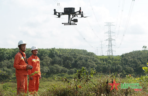 ກຳມະກອນຂະແໜງໄຟຟ້ານຳໃຊ້ flycam ໄດ້ອະນຸຍາດໃຊ້ເພື່ອກວດກາເຄືອຂ່າຍໄຟຟ້າ. ພາບ: ບໍລິສັດໃຫຍ່ສາຍສົ່ງໄຟຟ້າແຫ່ງຊາດສະໜອງ. |