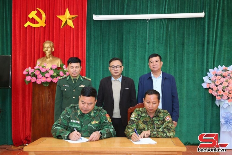 ຄ້າຍທະຫານຊາຍແດນຈ່ຽງເຕືອງ ແລະກອງຮ້ອຍທະຫານຊາຍແດນ 213 ຂຶ້ນກັບກອງບັນຊາການທະຫານແຂວງຫົວພັນ, ປະເທດລາວ ເຊັນບົດບັນທຶກຮັບຮູ້ຜົນການລາດຕະເວນສອງຝ່າຍ. ພາບ: baosonla.vn |