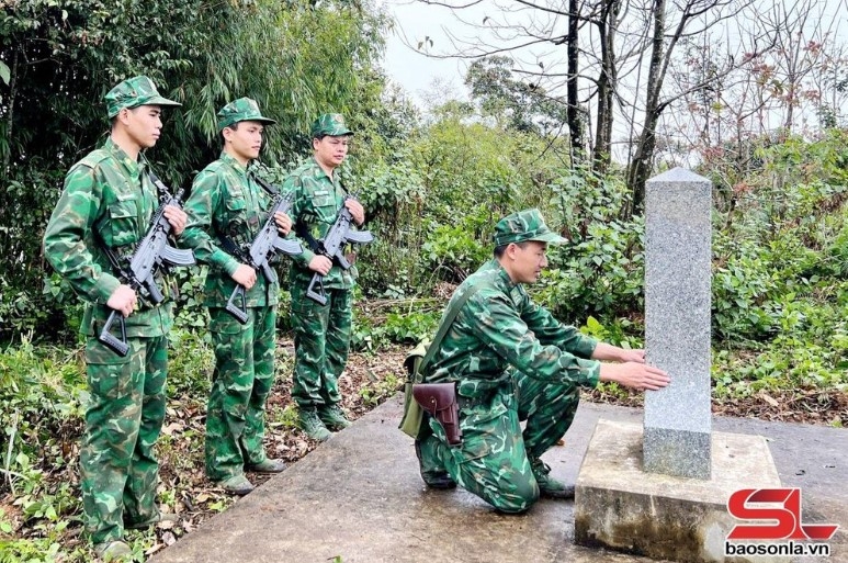 ພະນັກງານ, ນັກຮົບຄ້າຍທະຫານຊາຍແດນຈ່ຽງເຊີນ ລາດຕະເວນ, ກວດກາຫຼັກໝາຍຊາຍແດນ. ພາບ: baosonla.vn |