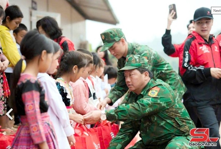 ພະນັກງານຄ້າຍທະຫານຊາຍແດນຈ່ຽງເຊີນ ມອບຂອງຂວັນໃຫ້ນັກຮຽນປະສົບກັບຄວາມຫຍຸ້ງຍາກ. ພາບ: baosonla.vn |