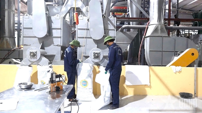 ພະນັກງານ-ພາລະກອນ ໂຮງງານປຸງແຕ່ງຜະລິດຕະພັນກະເສດຜາແດງ ທໍາງານຕ່ອງໂສ້ການຜະລິດ. ພາບ: qdnd.vn |