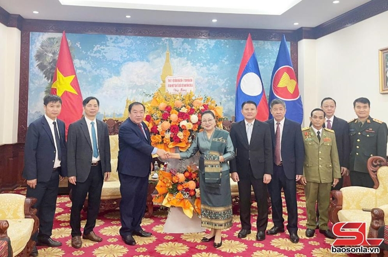 ຄະນະປະຕິບັດງານແຂວງເຊີນລາ ມອບຊໍ່ດອກໄມ້ອວຍພອນສະຖານທູດ ລາວ ປະຈຳ ຫວຽດນາມ. ພາບ: baosonla.vn |