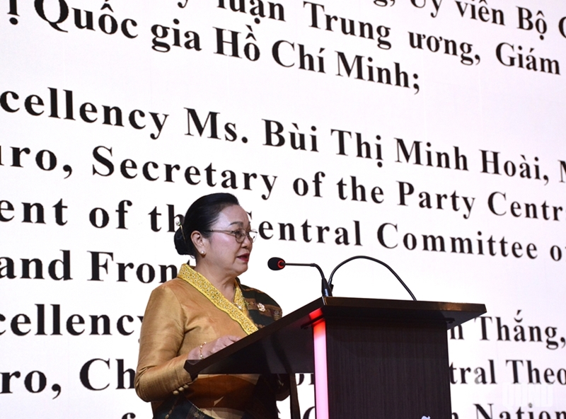 ສ່ວນທ່ານນາງ ຫງວຽນທິແທັງ ຮອງປະທານສະພາແຫ່ງຊາດຫວຽດນາມ ເນັ້ນໜັກວ່າ ບັນດາຜົນງານຂອງລາວໃນ 50 ປີຜ່ານມາ ແມ່ນຄວາມມ່ວນຊື່ນ, ຄວາມເອກອ້າງທະນົງໃຈຂອງສອງພັກ, ສອງລັດ ແລະປະຊາຊົນສອງປະເທດ. ພ້ອມທັງຊີ້ແຈ້ງວ່າ, ພັກ, ລັດ ແລະ ປະຊາຊົນຫວຽດນາມ ຈະເຮັດຈົນສຸດຄວາມສາມາດຂອງຕົນພ້ອມກັບພັກ, ລັດ ແລະປະຊາຊົນລາວ ສືບຕໍ່ປົກປັກຮັກສາ ແລະເພີ່ມພູນຄູນສ້າງສາຍພົວພັນສາມັກຄີແບບພິເສດ ຫວຽດນາມ-ລາວ ໃຫ້ພັດທະນາຢ່າງບໍ່ຢຸດຢັ້ງ, ເພື່ອຄວາມຈະເລີນຮຸ່ງເຮືອງ ແລະຄວາມຜາສຸກຂອງປະຊາຊົນສອງປະເທດ, ເພື່ອສັນຕິພາບ, ສະຖຽນລະພາບ, ການຮ່ວມມື ແລະພັດທະນາຢູ່ພາກພື້ນ ແລະໃນໂລກ.