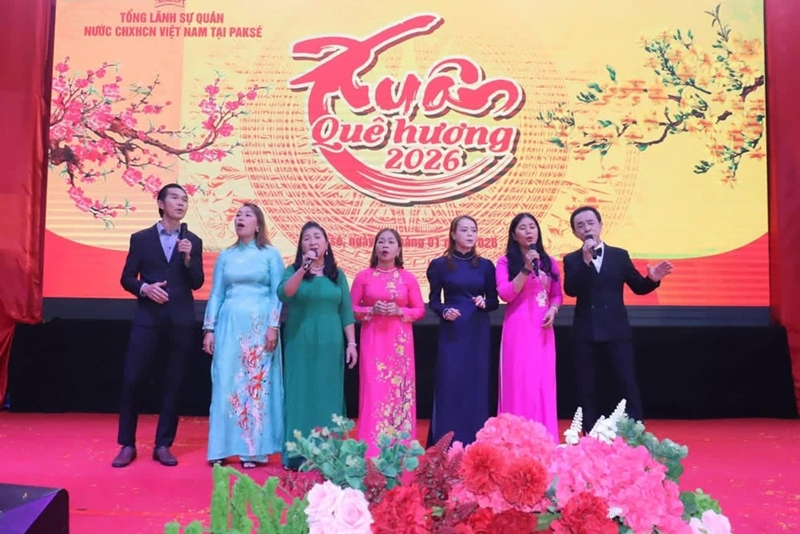 ລາຍການລະດູບານໃໝ່ບ້ານເກີດເມືອງນອນຂໍ່ານັບຮັບຕ້ອນລະດູບານໃໝ່ 2026 ຢູ່ ປາກເຊ. ພາບ: baovanhoa.vn |