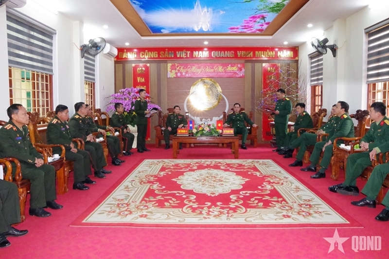 ກປ.ອອນໄລ - ເນື່ອງໃນໂອກາດບຸນປີໃໝ່ປະຈໍາຊາດ ປີມະເມຍ 2026 - ບຸນປີໃໝ່ປະຈໍາຊາດຫວຽດນາມ, ຕອນເຊົ້າວັນທີ 8 ກຸມພາ, ຄະນະປະຕິບັດງານກອງພົນທີ 4, ກອງທັບປະຊາຊົນລາວ ນຳໂດຍທ່ານພັນເອກ ເຂັມພອນ ມູນທະດີ, ຫົວໜ້າກອງພົນທີ 4 ໄດ້ມາຢ້ຽມຢາມ ແລະອວຍພອນປີໃໝ່ພະນັກງານ, ນັກຮົບກອງພົນ 968, ທະຫານເຂດ 4.