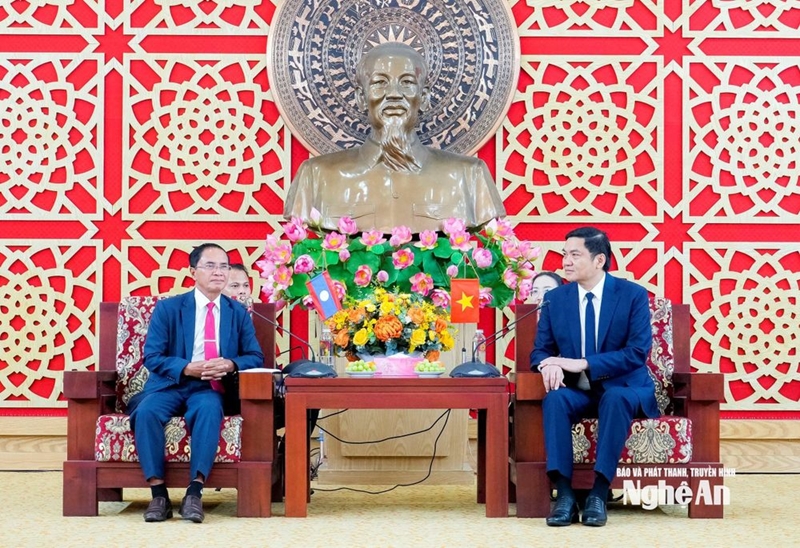 ກປ.ອອນໄລ - ຕອນເຊົ້າວັນທີ 31 ມີນາ, ສະຫາຍ ຮວ່າງເຫງຍຮ໊ຽວ, ຮອງເລຂາຜູ້ປະຈໍາການຄະນະພັກແຂວງ, ປະທານສະພາປະຊາຊົນແຂວງເງະອານ ໄດ້ໃຫ້ການຕ້ອນຮັບຄະນະຜູ້ແທນສະພາປະຊາຊົນແຂວງສາລະວັນ ນໍາໂດຍສະຫາຍ ສີເຮັ່ງ ຫອມສົມບັດ, ປະທານສະພາປະຊາຊົນແຂວງສາລະວັນ ໄດ້ມາຢ້ຽມຢາມ ແລະຊົມເຊີຍຜົນສໍາເລັດຂອງການເລືອກຕັ້ງສະມາຊິກສະພາແຫ່ງຊາດຊຸດທີ XVI ແລະສະມາຊິກສະພາປະຊາຊົນທຸກຂັ້ນ, ອາຍຸການ 2026-2031 ໃນບໍລິເວນແຂວງເງະອານ.