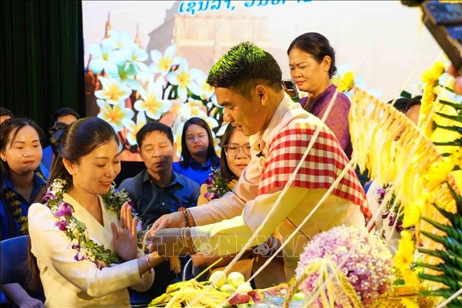 ພິທີຜູກແຂນທີ່ລາຍການ. ພາບ: ສໍານັກຂ່າວສານຫວຽດນາມ. |