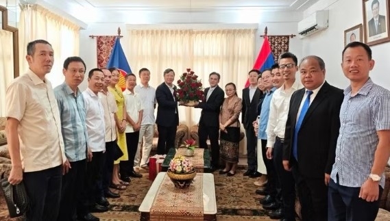 ຄະນະຜູ້ແທນສະຖານທູດຫວຽດນາມ ປະຈໍາ ກູບາ ມາອວຍພອນພະນັກງານສະຖານທູດລາວ ປະຈໍາ ກູບາ ເນື່ອງໃນໂອກາດບຸນປີໃໝ່ປະຈຳຊາດລາວ. ພາບ: nhandan.vn |