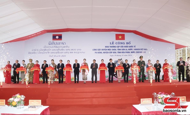 ພິທີຕັດແຖບຜ້າເປີດການນໍາໃຊ້ຄູ່ດ່ານສາກົນ ລອງເສິບ-ປາຮາງ. ພາບ: baosonla.vn |