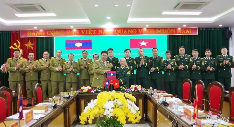 ພິທີແລກປ່ຽນບົດບັນທຶກຊ່ວຍຈໍາທີ່ການພົບປະສອງຝ່າຍລະຫວ່າງທະຫານຊາຍແດນແຂວງດ້ຽນບຽນ ແລະກອງບັນຊາການປ້ອງກັນຄວາມສະຫງົບແຂວງຜົ້ງສາລີ, ລາວ. ພາບ: baodienbienphu.vn |
