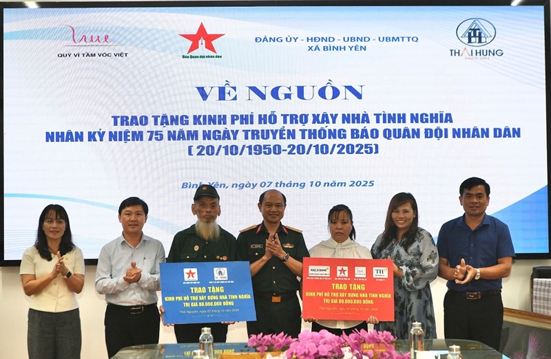 ກປ.ອອນໄລ - ວັນທີ 7 ຕຸລາ, ໜັງສືພິມກອງທັບປະຊາຊົນຫວຽດນາມ ໄດ້ສົມທົບກັບຄະນະກຳມະການປະຊາຊົນຕາແສງ ບິ່ງອຽນ ແລະບໍລິສັດຫຸ້ນສ່ວນການຄ້າ ໄທຮືງ ແລະທະນາຄານຫຸ້ນສ່ວນການຄ້າ ບັກອາ ຈັດຕັ້ງການໄປຢ້ຽມຢາມບ່ອນທີ່ໜັງສືພິມອອກສະບັບທໍາອິດ ຢູ່ບ້ານ ເຄົາຢຽວ (ຕາແສງ ດິ້ງບຽນ, ເມືອງດິ້ງຮວ໊າ), ປະຈຸບັນແມ່ນຕາແສງ ບິ່ງອຽນ, ແຂວງທ໊າຍງວຽນ ແລະມອບເງິນໜູນຊ່ວຍກໍ່ສ້າງເຮືອນແຫ່ງສາຍຈິດມິດໃຈ; ມອບຂອງຂວັນໃຫ້ຄະນະພັກ, ອໍານາດການປົກຄອງທ້ອງຖິ່ນ. ທ່ານພັນເອກພິເສດ ເຈິ່ນແອງຕ໊ວນ, ຮອງຫົວໜ້າບັນນາທິການໜັງສືພິມກອງທັບປະຊາຊົນ ນໍາໜ້າຄະນະປະຕິບັດງານຂອງໜັງສືພິມກອງທັບປະຊາຊົນ.