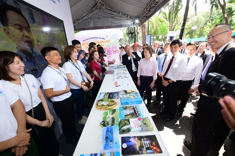 ບັນດາຜູ້ແທນຊົມຮ້ານວາງສະແດງຂອງ JICA ທີ່ເທດສະການ ຫວຽດນາມ-ຍີ່ປຸ່ນ. ພາບ: JICA ສະໜອງ. |