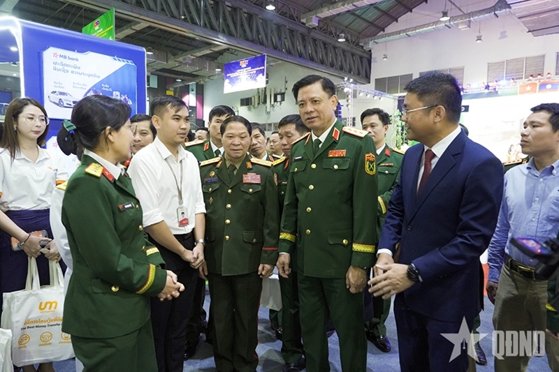 ທ່ານພົນໂທ ຫງວຽນເຈື່ອງຖັງ, ກໍາມະການສູນກາງພັກ, ຮອງລັດຖະມົນຕີກະຊວງປ້ອງກັນປະເທດຫວຽດນາມ ຢ້ຽມຢາມຮ້ານວາງສະແດງຂອງ Viettel ທີ່ງານຕະຫຼາດນັດ. ພາບ: qdnd.vn |