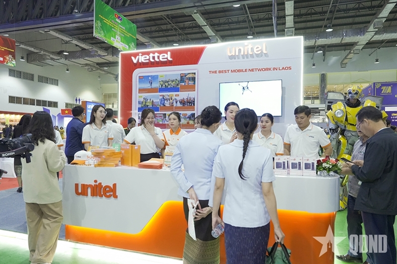ກຸ່ມບໍລິສັດ Viettel ດ້ວຍເຄື່ອງໝາຍການຄ້າ Unitel ທີ່ດຳເນີນທຸລະກິດຢູ່ລາວ, ໄດ້ແນະນຳບັນດາຜະລິດຕະພັນເຕັກໂນໂລຢີໃຫ້ແກ່ປະຊາຊົນລາວ, ໃນນັ້ນພົ້ນເດັ່ນແມ່ນຜະລິດຕະພັນຫຸ່ນຍົນຈັດແບ່ງແບບອັດຕະໂນມັດ ໃນຂົງເຂດໂລຈິດສະຕິກ. ທີ່ພິທີເປີດ, ທ່ານພົນໂທ ຫງວຽນເຈື່ອງຖັງ, ກໍາມະການສູນກາງພັກ, ຮອງລັດຖະມົນຕີກະຊວງປ້ອງກັນປະເທດ ໄດ້ໄປຢ້ຽມຢາມຮ້ານວາງສະແດງຂອງ Viettel ແລະຮັບຟັງການແນະນໍາລະອຽດກ່ຽວກັບຜະລິດຕະພັນ.