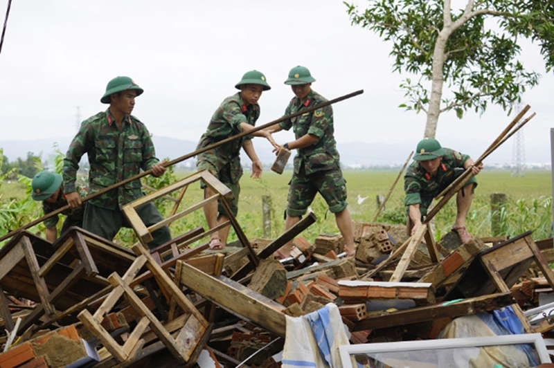 ເຮືອນແຫ່ງສາຍຈິດມິດໃຈຂອງແມ່ຕູ້ ຫງວຽນທິອ໊ຽນ (ອາຍຸ 76 ປີ, ທະຫານເສຍອົງຄະລະດັບ 2/4, ຢູ່ບ້ານວີງບາ, ຕາແສງຮວ່າທິ້ງ) ແລະຫຼານສາວທີ່ເປັນພະຍາດສະໝອງພິການມາແຕ່ກຳເນີດທີ່ຢູ່ໃກ້ກັບທົ່ງນາ. ໃນຄືນວັນທີ 19 ພະຈິກ, ໃນບໍ່ເທົ່າໃດຊົ່ວໂມງ, ນ້ຳໄດ້ໄຫຼຖ້ວມເຂົ້າທາງປ່ອງຢ້ຽມ. ໂຊກດີ, ໃນສະພາບທີ່ອັນຕະລາຍນັ້ນ, ກໍາລັງທະຫານລາດໄດ້ຍົກຍ້າຍອອກທັນເວລາ. ຝົນເຊົາ ແລະນ້ໍາໄດ້ຫຼຸດລົງ. ກອງບັນຊາການທະຫານຕາແສງ ສືບຕໍ່ລະດົມແຮງງານໜູນຊ່ວຍຄອບຄົວຂອງແມ່ຕູ້ອ໊ຽນ ໃນການຂູດຂີ້ຕົມ, ອະນາໄມເຮືອນຊານ, ສ້ອມແປງລະບົບໄຟຟ້າ. ຕອນເຊົ້າວັນທີ 23 ພະຈິກ, ຄະນະປະຕິບັດງານທະຫານເຂດ 5 ນຳໂດຍທ່ານພັນເອກພິເສດ ເຢືອງຮວ່າງຕວ໊ານ, ຮອງຫົວໜ້າຫ້ອງການເມືອງທະຫານເຂດ 5, ໄດ້ໄປຢ້ຽມຢາມຖາມຂ່າວ, ລະດົມກໍາລັງໃຈ, ມອບເຄື່ອງໃຊ້ທີ່ຈຳເປັນ ແລະເງິນສົດ 2 ລ້ານດົ່ງໃຫ້ແມ່ຕູ້ອ໊ຽນ. ຢູ່ທົ່ງນາເບື້ອງນັ້ນ, ຄອບຄົວຂອງແມ່ຕູ້ ຫວູທິບິງ (ອາຍຸ 76 ປີ, ຢູ່ບ້ານ ຟູຢ໋ຽນງວ່າຍ, ຕາແສງຮວ່າທີ້ງ) ແມ່ນຄອບຄົວທຸກຍາກ, ມີລູກຊາຍຕິດທາດພິດສີສົ້ມ ກໍໄດ້ທະຫານຊ່ວຍເຫຼືອ ແລະມອບຂອງຂວັນໃຫ້ຮອດເຮືອນເລີຍ.
