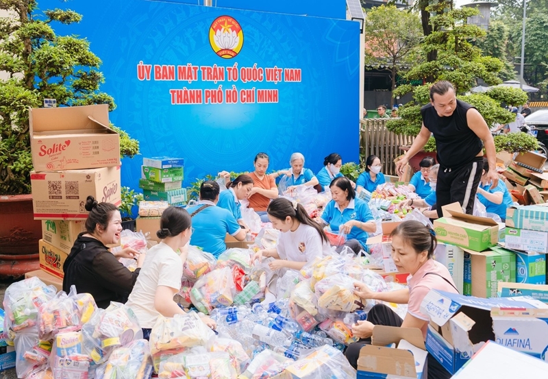 ພ້ອມກັບອໍານາດການປົກຄອງນະຄອນ, ບັນດາອົງການ, ກົມກອງກໍາລັງປະກອບອາວຸດ, ສະມາຄົມ, ສະໂມສອນ, ກຸ່ມອາສາສະໝັກກໍ່ໄດ້ພ້ອມກັນຈັດຕັ້ງການຂົນຂວາຍ, ຮຽກຮ້ອງ, ຕັ້ງໜ້າເຂົ້າຮ່ວມການສະໜັບສະໜູນ, ຊ່ວຍເຫຼືອເຄື່ອງໃຊ້ທີ່ຈຳເປັນ, ທຶນຮອນ, ພາຫະນະ, ຢຸກຢາເພື່ອຂົນສົ່ງໄປເຖິງເຂດນໍ້າຖ້ວມ, ສ້າງເປັນຂະບວນການ “ມຸ່ງໄປສູ່ພາກກາງ ອ້າຍນ້ອງ”. ໃນຊຸມວັນຜ່ານມາ, ຢູ່ຕາມຈຸດຕ້ອນຮັບຂອງຄະນະກຳມະການສູນກາງແນວໂຮມປະເທດຊາດຫວຽດນາມ ນະຄອນໂຮ່ຈີມິນ ມີປະຊາຊົນໄປບໍລິຈາກເງິນ, ເຄື່ອງຊ່ວຍເຫຼືອ, ເຄື່ອງໃຊ້ທີ່ຈຳເປັນ; ອາສາສະໝັກໄດ້ເຮັດວຽກຕະຫຼອດຄືນ. ຂະບວນລົດຂົນສົ່ງໄດ້ບັນທຸກເຄື່ອງຊ່ວຍເຫຼືອອອກເດີນທາງຢ່າງຕໍ່ເນື່ອງ, ມຸ່ງໜ້າໄປຊ່ວຍເຫຼືອແຂວງແຄ໊ງຮວ່າ, ດັກລັກ, ຢາລາຍ. ທີ່ຫໍວັດທະນະທຳຊາວໜຸ່ມ, ຫໍວັດທະນະທຳນັກສຶກສາ, ຫໍເຍົາວະຊົນ, ມະຫາວິທະຍາໄລແຫ່ງຊາດ ນະຄອນໂຮ່ຈີມິນ, ສະຖານີລົດໄຟ metro ເບັ໊ນແທັ່ງ-ສວຍຕຽນ ທັງໝົດ 14 ສະຖານີ... ໄດ້ກາຍເປັນຈຸດເຕົ້າໂຮມເຄື່ອງບັນເທົາທຸກຂະໜາດໃຫຍ່, ໂດຍມີສະມາຊິກຊາວໜຸ່ມ, ຊາວໜຸ່ມ, ນັກຮຽນ, ນັກສຶກສາເຂົ້າຮ່ວມການຮັບ, ຄັດເລືອກ, ຫຸ້ມຫໍ່, ຍົກຍໍ ແລະຂົນສົ່ງເປັນຈຳນວນຫຼວງຫຼາຍ.
