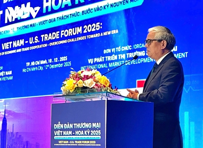 ຕອນເຊົ້າວັນທີ 10 ທັນວາ, ຢູ່ນະຄອນໂຮ່ຈີມິນ, ກົມພັດທະນາຕະຫຼາດຕ່າງປະເທດ (ກະຊວງອຸດສາຫະກໍາ ແລະການຄ້າຫວຽດນາມ) ໄດ້ສົມທົບກັບຫ້ອງການການຄ້າ ອາເມລິກາ ປະຈໍາຫວຽດນາມ (AmCham Việt Nam) ຈັດຕັ້ງເວທີປາໄສການຄ້າ ຫວຽດນາມ-ອາເມລິກາ ປີ 2025 ດ້ວຍຫົວຂໍ້ “30 ປີແຫ່ງການຮ່ວມມືດ້ານເສດຖະກິດ-ການຄ້າ-ຜ່ານຜ່າສິ່ງທ້າທາຍ, ກ້າວເຂົ້າສູ່ສັງກາດໃໝ່”.