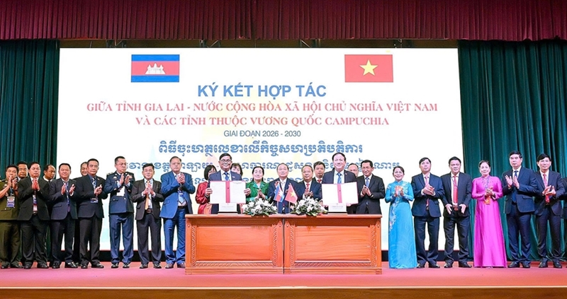 ທີ່ກອງປະຊຸມ, ການນຳແຂວງຢາລາຍ ແລະບັນດາແຂວງພາກຕາເວັນອອກສ່ຽງເໜືອຂອງກໍາປູເຈຍ ໄດ້ລົງນາມການຮ່ວມມືໄລຍະ 2026-2030, ໂດຍສຸມໃສ່ເນື້ອໃນຈຸດສຸມ, ຄື: ຊາບຊຶມ, ຍົກສູງຄວາມຮັບຮູ້ຂອງພະນັກງານ, ລັດຖະກອນ ແລະປະຊາຊົນກ່ຽວກັບການພົວພັນ “ບ້ານໃກ້ເຮືອນຄຽງອັນດີງາມ, ມິດຕະພາບທີ່ເປັນມູນເຊື້ອ, ການຮ່ວມມືຮອບດ້ານ, ຍືນຍົງຍາວນານ” ລະຫວ່າງຫວຽດນາມ ແລະກໍາປູເຈຍ; ເພີ່ມທະວີການໂຄສະນາໃນພາຫະນະສື່ມວນຊົນ ແລະຜ່ານການເຄື່ອນໄຫວພົບປະແລກປ່ຽນປະຊາຊົນ, ການທູດປະຊາຊົນ.
