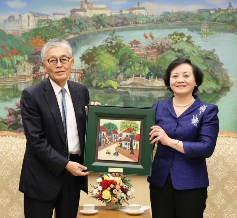 ທ່ານນາງ ຟ້າມທິແທງຈ່າ ຮອງນາຍົກລັດຖະມົນຕີ ແລະທ່ານ Honna Hitoshi ປະທານ ທັງເປັນຜູ້ອໍານວຍການໃຫຍ່ກຸ່ມບໍລິສັດໃຫຍ່ Erex (ຢີ່ປຸ່ນ). ພາບ: baochinhphu.vn |