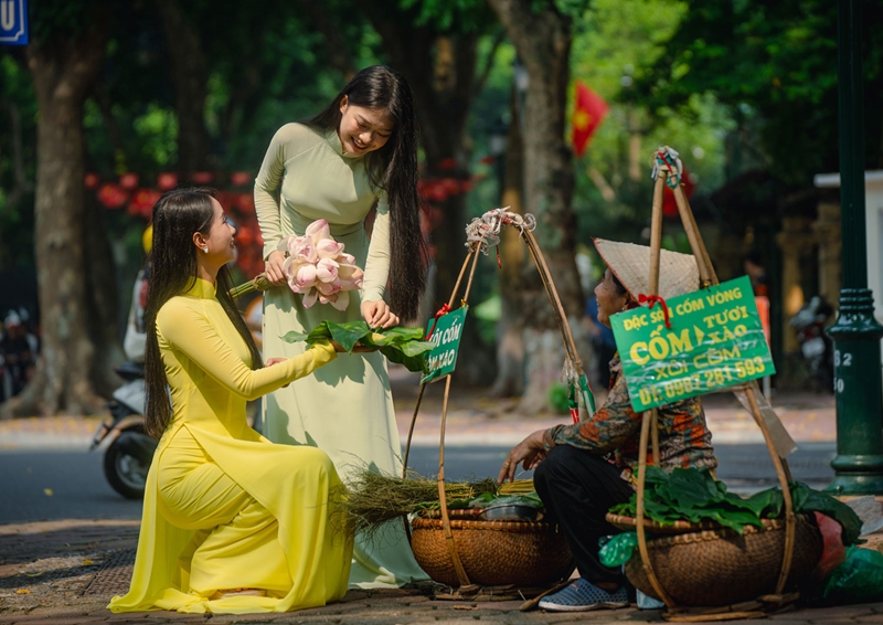 ສາວ ຮ່າໂນ້ຍ ລົງທ້ອງຖະໜົນໃນລະດູໃບໄມ້ຫຼົ່ນ. ພາບ: ແຄ໋ງຮວ່າ. |