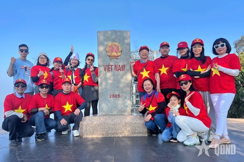 ນັກທ່ອງທ່ຽວ ຢ້ຽມຊົມ, ຖ່າຍຮູບຢູ່ຫຼັກໝາຍຊາຍແດນລະຫວ່າງສາມປະເທດຫວຽດນາມ-ລາວ-ຈີນ ຢູ່ບ້ານອາປາຈ໋າຍ, ຕາແສງ ຊິ່ນເທົ່າ, ເມືອງແຍ໊, ແຂວງດ້ຽນບຽນ. ພາບ: qdnd.vn |