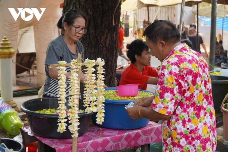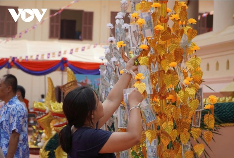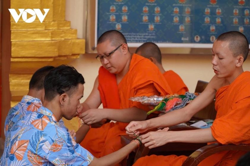 ປະຊາຊົນລາວ ໄປວັດເພື່ອຕ້ອນຮັບບຸນປີໃໝ່ປະຈໍາຊາດ ເປັນຈໍານວນຫຼວງຫຼາຍ. ພາບ: vov.vn |