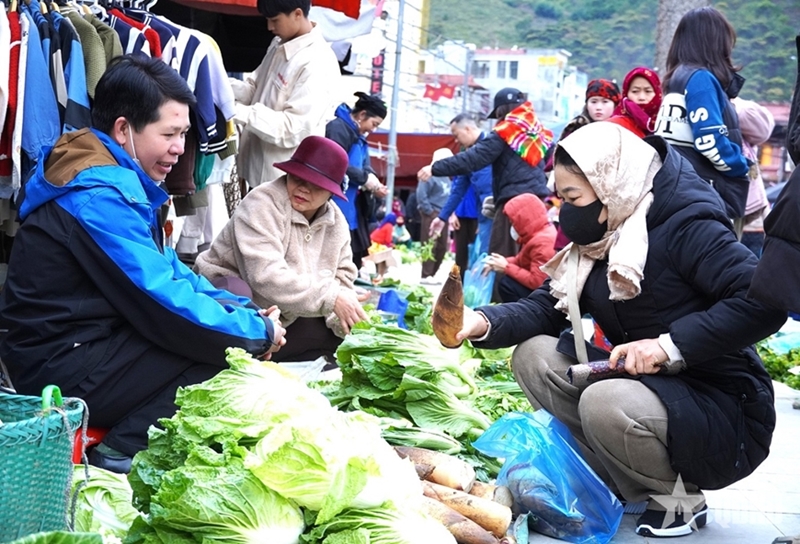 ນັບແຕ່ຮຸ່ງເຊົ້າ, ຍາດຕິພີ່ນ້ອງຂອງບັນດາບ້ານນໍາຜະລິດຕະພັນກະເສດ, ດອກຄາຍ, ໃບຕອງຈີງ, ທູບ... ມາຕະຫຼາດ. ສຽງເວົ້າພ້ອມກັບສຽງຍ່າງ, ສີສັນສົດໃສຂອງຜ້າແພປະສົມກັບສີຂຽວຂອງຜັກປ່າ, ສ້າງຮູບພາບຕະຫຼາດທີ່ໜ້າຕື່ນຕາຕື່ນໃຈ, ອົບອຸ່ນ ແລະເຕັມໄປດ້ວຍສີສັນບຸນເຕັດ, ເປັນສັນຍານວ່າລະດູບານໃໝ່ໄດ້ວຽນມາ.