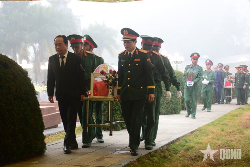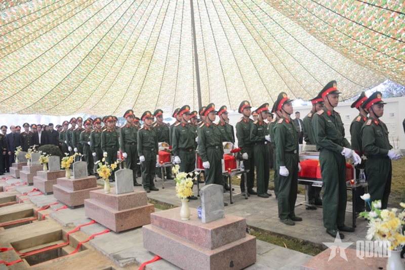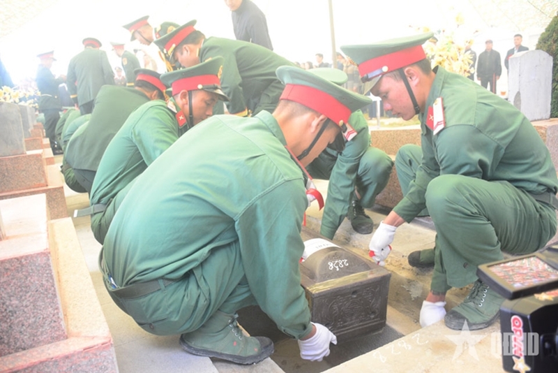 ພິທີປົງອັດຖິທະຫານອາສາສະໝັກ ແລະຊ່ຽວຊານຫວຽດນາມ ທີ່ເສຍສະຫຼະຊີວິດໃນປາງສົງຄາມຢູ່ລາວ ໄດ້ຈັດຂຶ້ນຢ່າງສົມກຽດທີ່ສຸສານນັກຮົບເສຍສະຫຼະຊີວິດເພື່ອຊາດ ຕົງຄາວ. ພາບ: qdnd.vn |