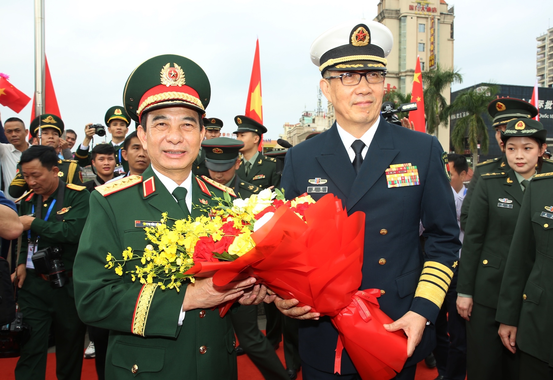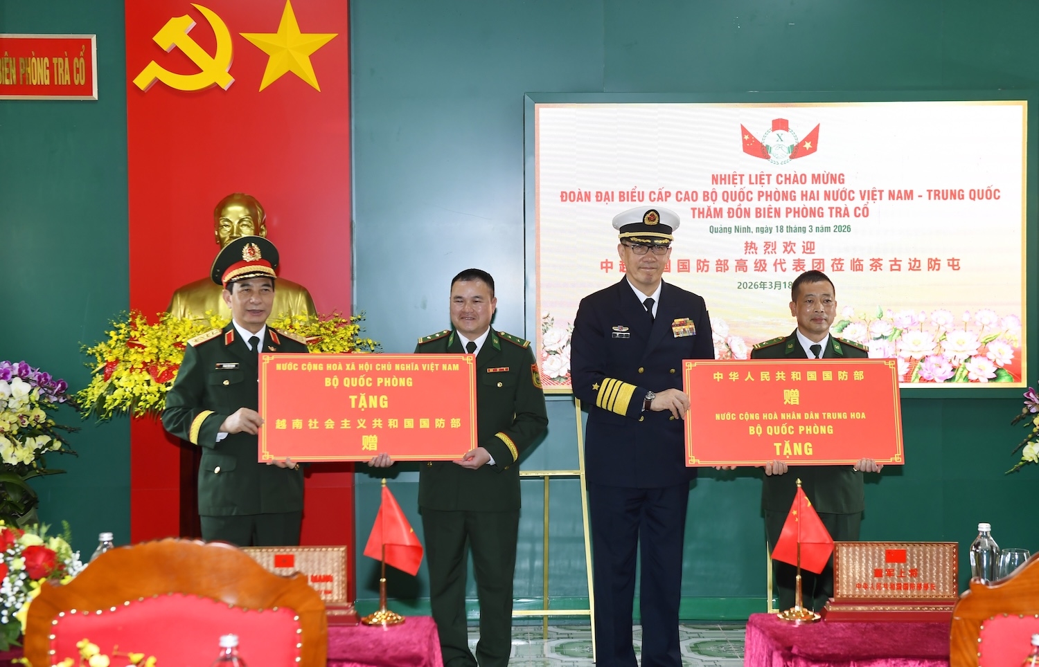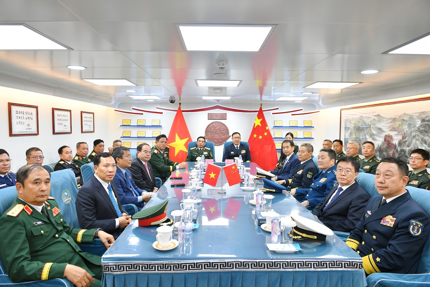 ຄະນະຜູ້ແທນຫວຽດນາມ ນຳໂດຍທ່ານພົນເອກ ຟານວັນຢາງ, ກໍາມະການກົມການເມືອງ, ຮອງເລຂາຄະນະພັກການທະຫານສູນກາງ, ລັດຖະມົນຕີກະຊວງປ້ອງກັນປະເທດຫວຽດນາມ. ຄະນະຜູ້ແທນຈີນ ນຳໂດຍທ່ານພົນໂທ ຕົງ ຈຸ່ນ ລັດຖະມົນຕີກະຊວງປ້ອງກັນປະເທດຈີນ.