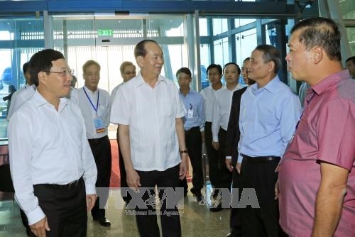 ທ່ານປະທານປະເທດ ເຈີນດ້າຍກວາງ ໄດ້ໄປຢ້ຽມຢາມ ແລະກວດກາວຽກງານຮັບປະກັນຄວາມ ໝັ້ນຄົງ, ຄວາມເປັນລະບຽບຮຽບຮ້ອຍໃນການຕ້ອນຮັບບັນດາການນຳທີ່ມາຈາກບັນດາພື້ນຖານ ເສດຖະກິດສະມາຊິກ APEC ທີ່ສະໜາມບິນສາກົນ ດ່າໜັ້ງ. ພາບ: TTXVN