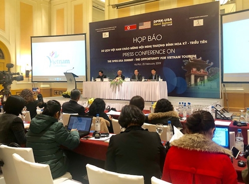 ກປ.ອອນໄລ - ຕອນບ່າຍວັນທີ 25 ກຸມພາ, ຢູ່ຮ່າໂນ້ຍ, ກົມໃຫຍ່ທ່ອງທ່ຽວຫວຽດນາມ ແລະສະຫະສະມາຄົມທ່ອງທ່ຽວຫວຽດນາມ ໄດ້ຈັດຕັ້ງການປະຊຸມຂ່າວດ້ວຍຫົວຂໍ້ “ຂະແໜງທ່ອງທ່ຽວຫວຽດນາມ ຂ່ຳນັບຮັບຕ້ອນກອງປະຊຸມສຸດຍອດ ອາເມລິກາ-ສປປ.ເກົາຫຼີ” ເນື່ອງໃນໂອກາດການນໍາອາເມລິກາ ແລະສປປ.ເກົາຫຼີ ມາຢ້ຽມຢາມຫວຽດນາມ.