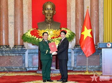 ມອບຂໍ້ຕົກລົງແຕ່ງຕັ້ງໃຫ້ດໍາລົງຕໍາແໜ່ງຫົວໜ້າກົມໃຫຍ່ການເມືອງກອງທັບປະຊາຊົນຫວຽດນາມ ແລະເລື່ອນຊັ້ນຂຶ້ນຊັ້ນພົນເອກ ແລະພົນໂທໃຫ້ບັນດາສະຫາຍພະນັກງານກອງທັບ